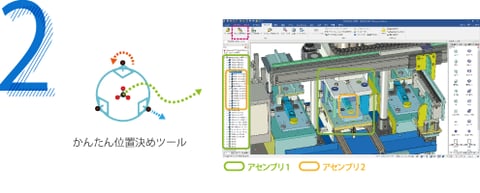 「カタログ」からのドラッグ&ドロップ、拘束を使わない配置ツール「TriBall(トライボール)」などの独自機能により、すばやいモデリングが可能です。