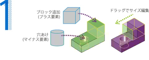 3次元形状をドラッグ&ドロップでモデリング。単純形状の組み合わせでできる装置や治具であれば、スケッチ不要。仕事が超速い。